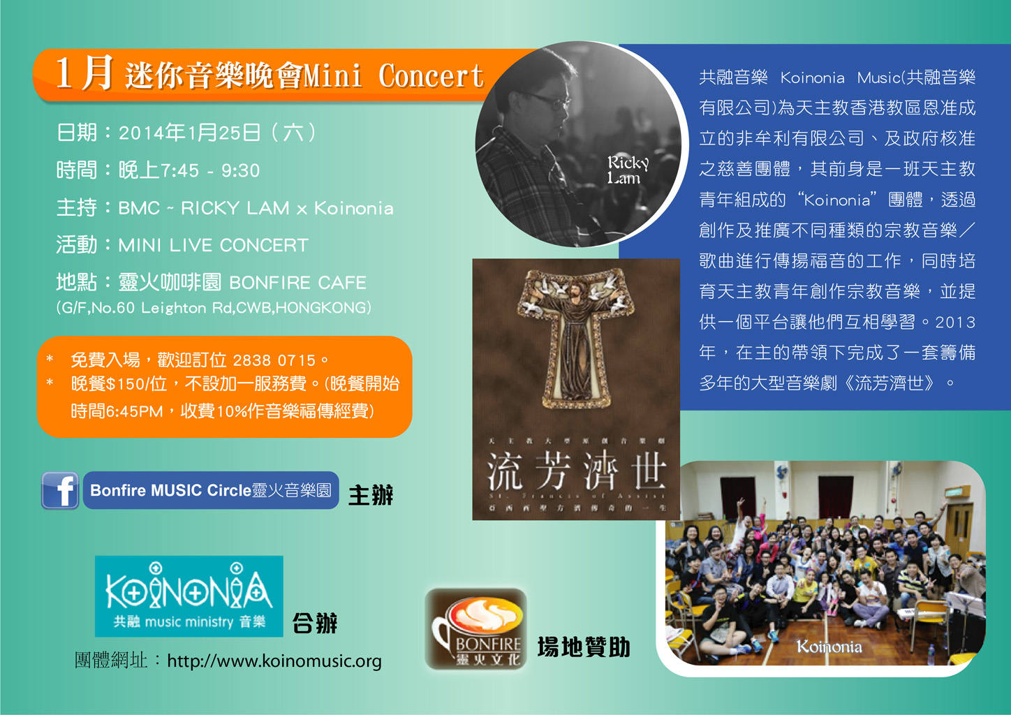 | 燃點你我心中靈火 推廣信仰生活文化 God enlighten our spirit Faith enrich our life |